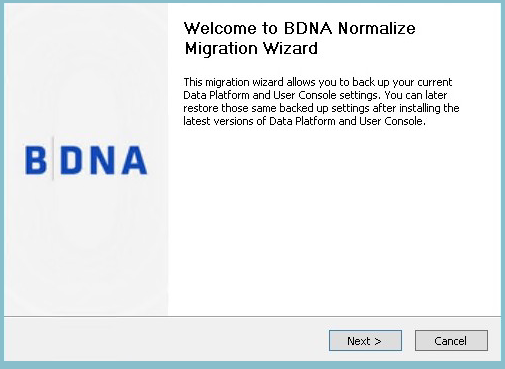 - Double-click the Data Platform Normalize Migration Wizard icon on your desktop after downloading it from a location provided by Flexera Support.